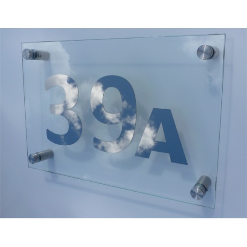 These Tempered Glass House Plaques look great with our stainless lettering.
